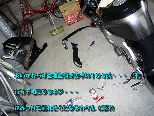 ネジを失くし、カウルを破壊しかけ、変な汁を