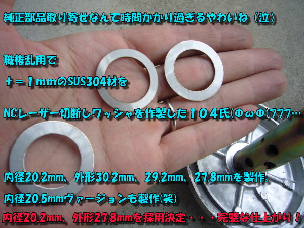 ―――SUS304 t=1mmのワッシャが欲しい読者諸賢はメールくださいやわいね!早い者勝ちなんよ―――
