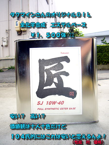 右往左往しながら104氏は独断と偏見でオイルを選定し、オイル交換(その他諸々)に一歩を踏み出した。