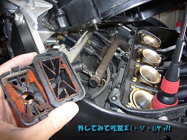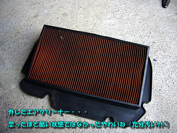CBR250RR@104号のエアフィルターが汚れていることは確認するまでもなく明らかである。