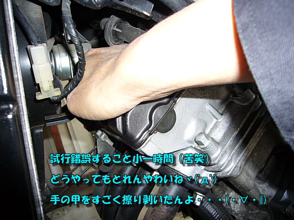 そうやって、手の甲を擦り剥き、ちょびっと流血し、変な体勢を余儀なくされあちこちの筋を痛めながら104氏のプラグ交換は続いたのである。