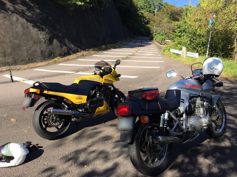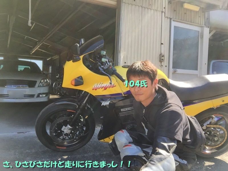 帰り掛け、急勾配の連続ヘアピンコーナーでカタナ氏についていけなかった104氏はそれでも胸を張る。