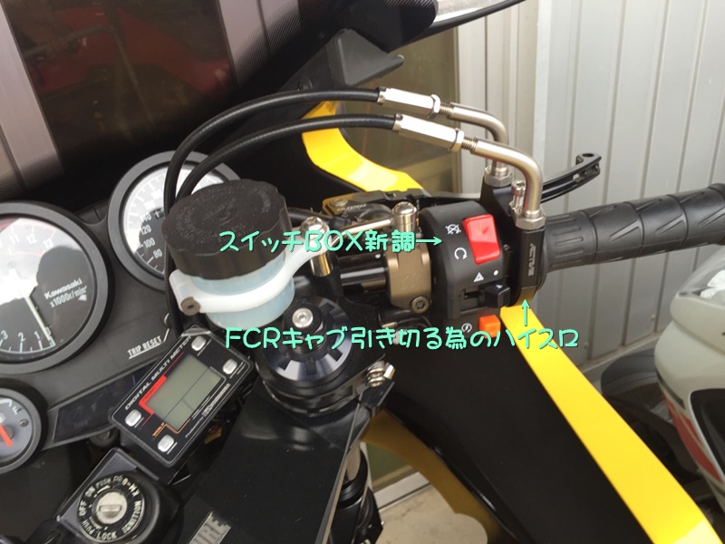純正の負圧式キャブレターからの換装でFCRキャブレターを導入したのであるが、これは純正のスロットルでは引ききれない。
