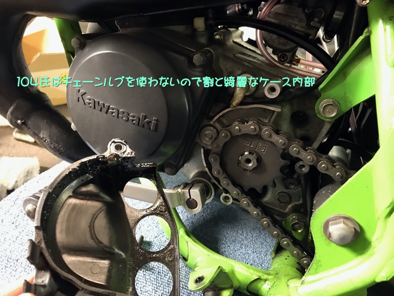 チェーンルブを使わず、オイルでチェーンをメンテする信条の104氏。