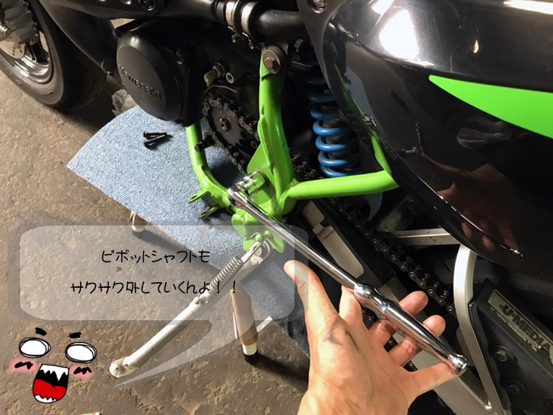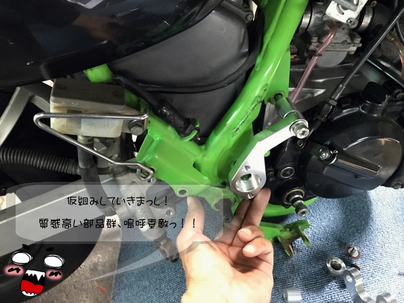 嗚呼素敵、なんだかGPZ900Rのステップ交換みたいではないか(さすが川崎?)。