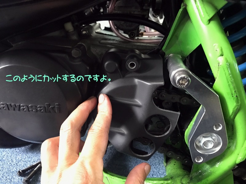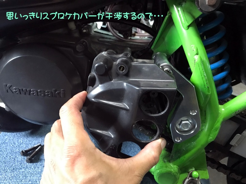 スプロケカバーの画像右上部分がエンジンマウントから迫り出すようになったカラーに思いっきり干渉するのです。