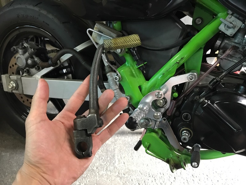 純正ステップバー、純正キックペダル、純正ブレーキペダル、純正シフトペダルをまず外すのである。