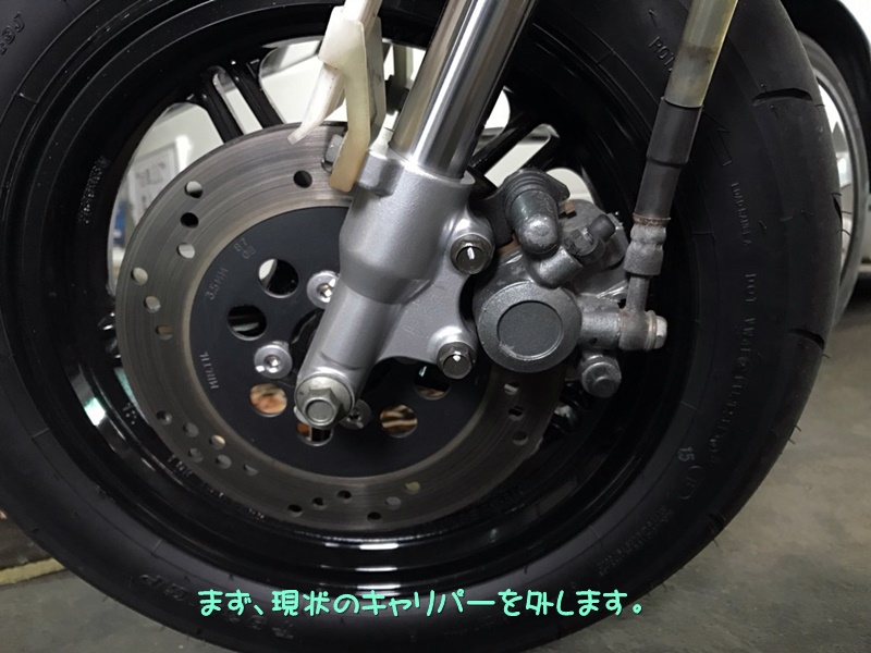これを証明すべく (いや、本当は利かないフロントブレーキでは危ないし走りのリズムが取れないからなんだけど・・・) キャリパー交換するのである!!