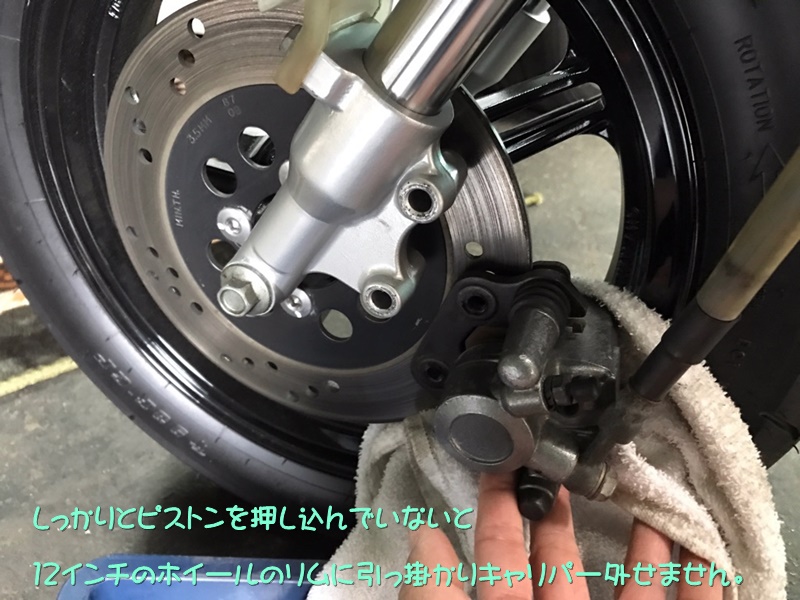 ヘンテコな呻き声とともに、ローターに梃子の原理でパッドを押し付け無理やりピストンを押し込む荒業で事無きを得る104氏。