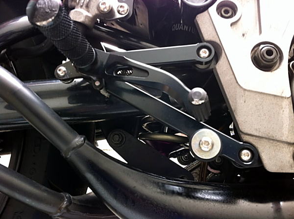 かなり力技でステップの位置を戻し、微調整の為に、カラーをもう1枚入れ、なんとか満足できないこともない位置に修繕しました。
