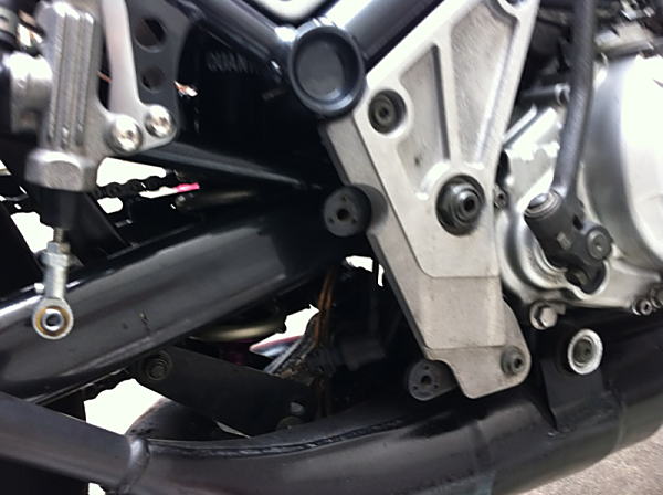 今回ステップに社外チャンバーを取り付けるための部品は組み込みませんでした。