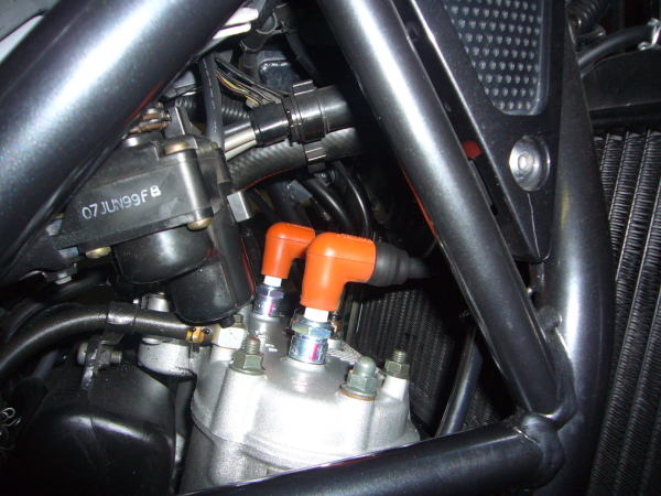 純正プラグキャップのイイところはプラグ上端のアルミカバーを除去せずに使用できるところ。