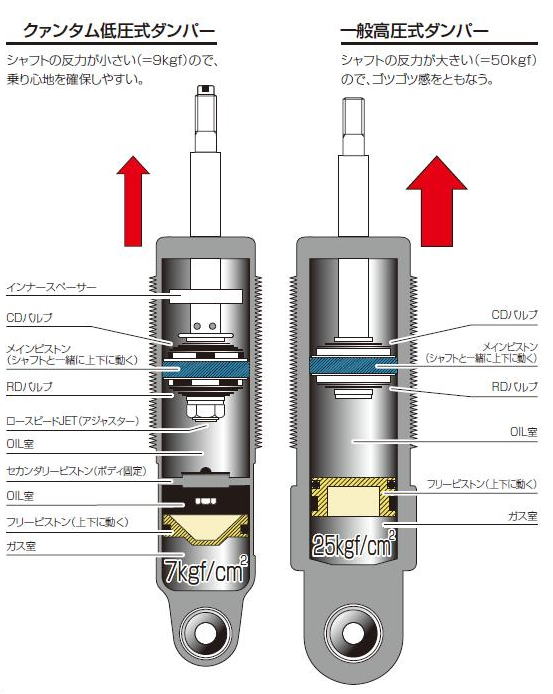 純正よりは明らかに硬い(減衰が強い)のだが、サスの動き始める初期荷重量は純正サスより低いのである。