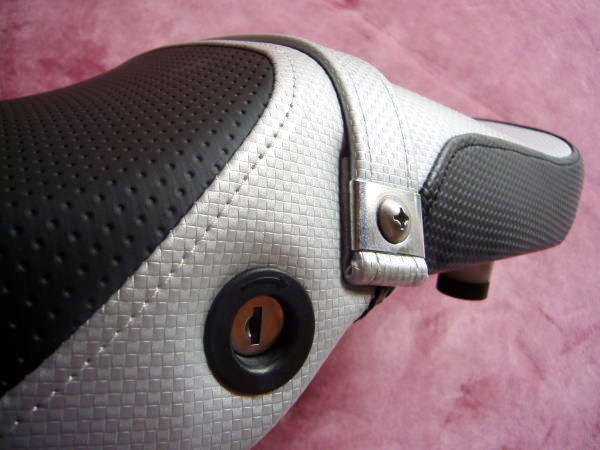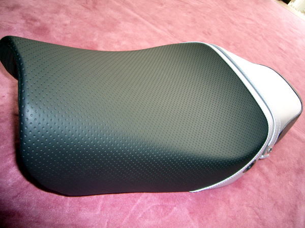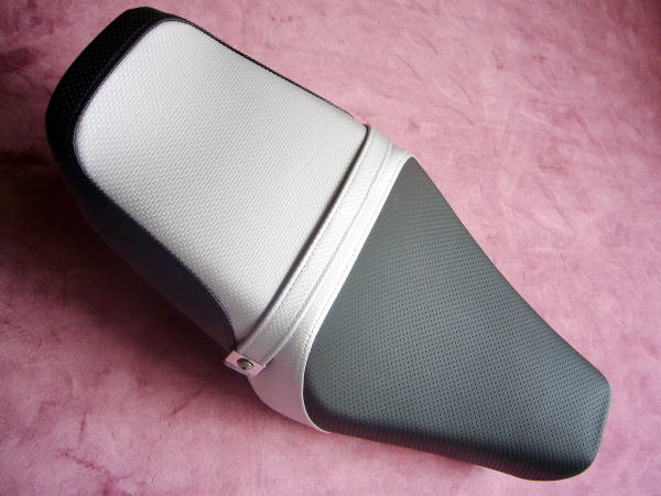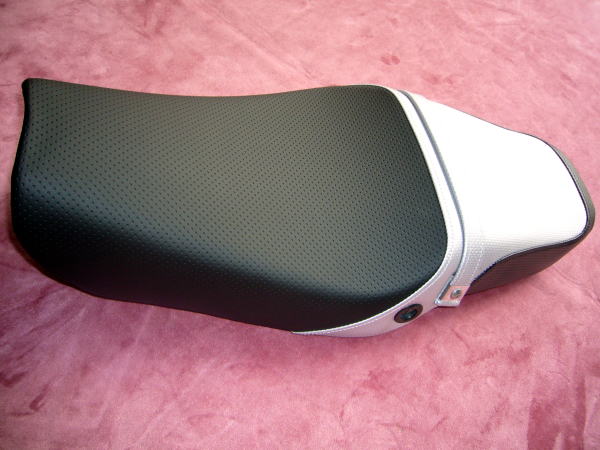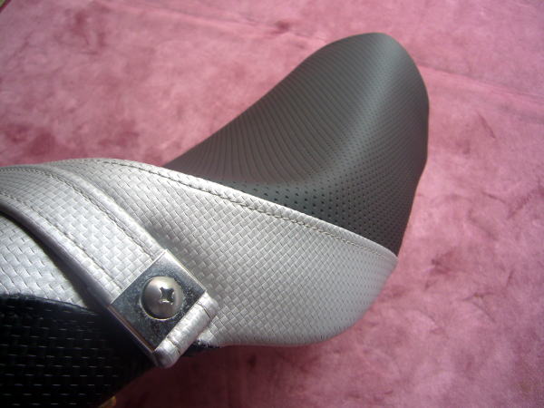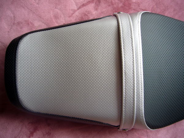 今回104氏は座面をディンプル生地、タンデム面をシルバーカーボン生地、その淵を囲う様にカーボン生地のデザインとした。