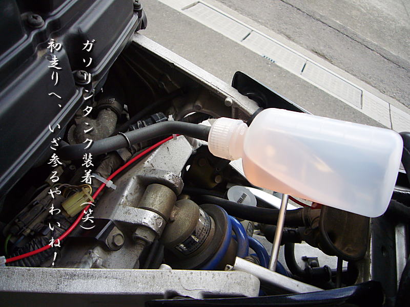 ―――うぬぅ!4気筒マシンの空っぽのキャブに適正な液面を作るのに100cc以上のガソリンが必要だと言うことに気が回らんかったんやわいね!―――