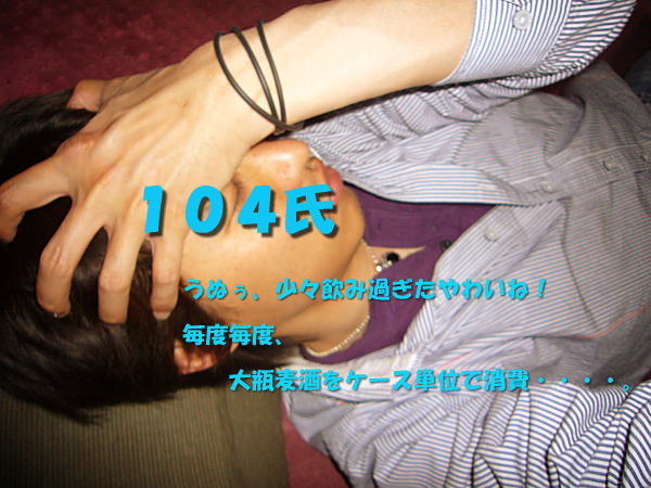 口中に何とも苦い味がひろがったらしく、その味の虫を噛み潰した表情を作る104氏の眼は虚ろである。