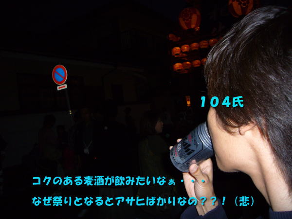 ヨメ様帰宅後・・・・・鼻高々なる心を慎み深くひた隠しにして御褒めの言葉を待つ104氏に酒精を帯びたヨメ様は無情にも言い放った。