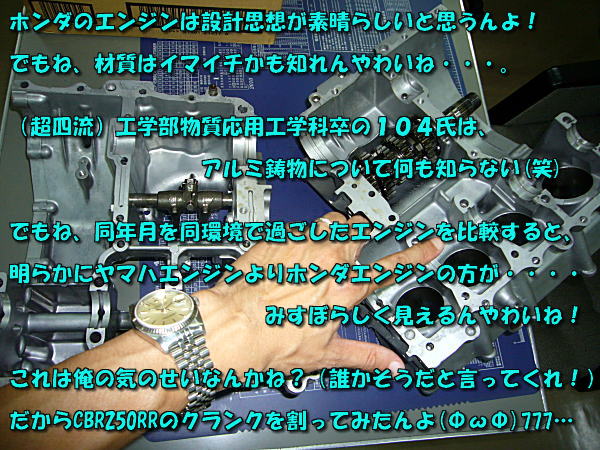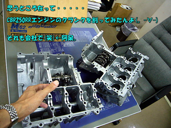 整備テクや作業時間、設備の問題などから全部独りでCBR250RRの面倒を看れもしないくせに、104氏はにこやかにそう言い切ったのである。