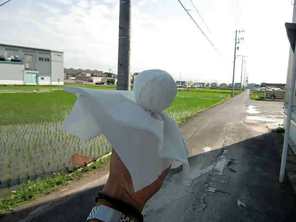 美的センスの欠片もない104氏は、祈りを奉げる照る照る坊主を生み出し、なむなむ、と唱えている。