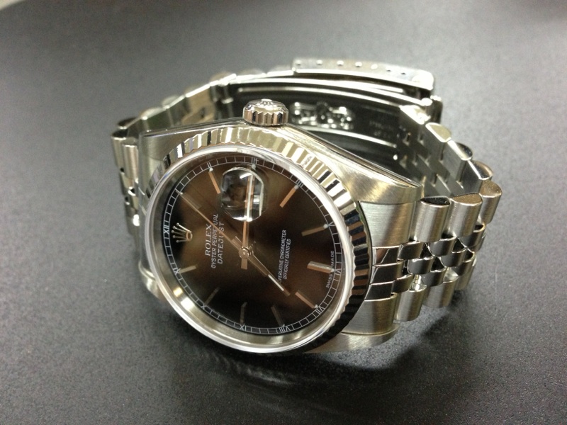 白かった文字盤を黒に変更し、精悍な顔つきになって帰還したロレ太郎をほくほくと見つめる104氏である。