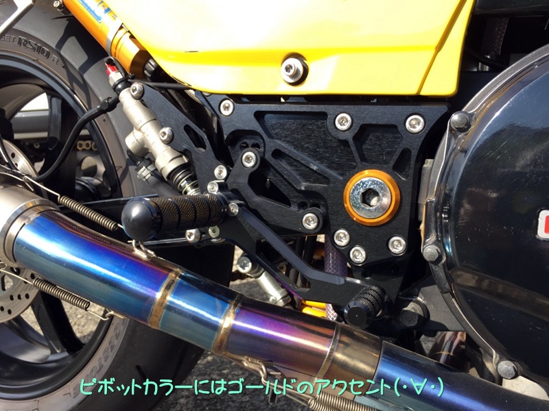 ポジションが選べること、黒いこと、ピボットカラーの色を選べること(黄色を選択!)、チェーンローラーガイドをノーブレスト製品としたかったこと(純正ステッププレートでは装着NG!)、