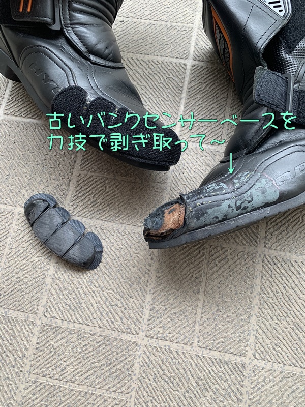 バンクセンサーベースをバリバリ剥ぎ取る104氏。