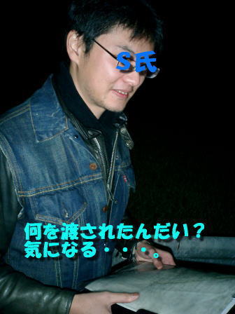 何かを渡されるS氏 (゜д ゜;) そ、それはナニ??