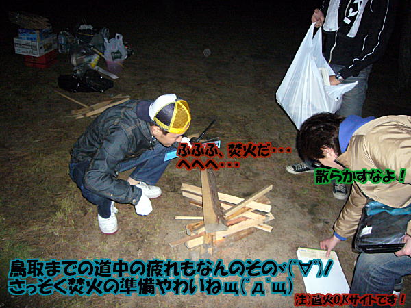 街灯もなくあたりは真っ暗・・・これでは宴会を開けない!と阿呆どもが焚き火の準備に精を出す(笑)