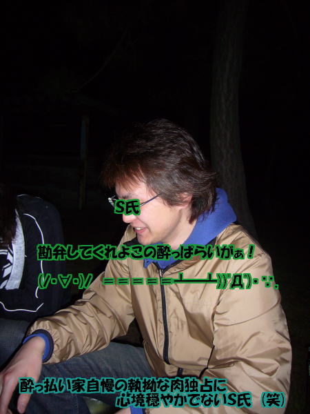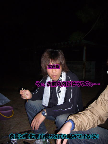 肉を焼き始めた早々で既にビールで出来上がった家自慢がS氏の肉を奪いにかかります(苦笑)