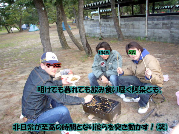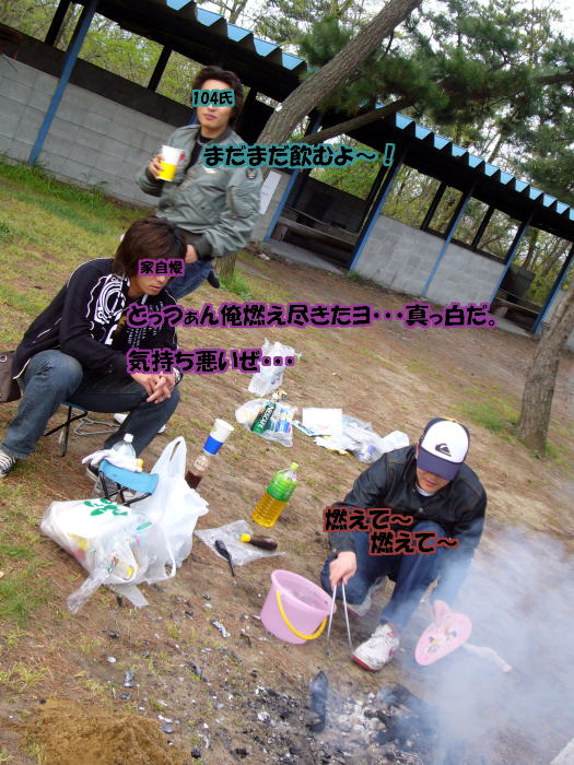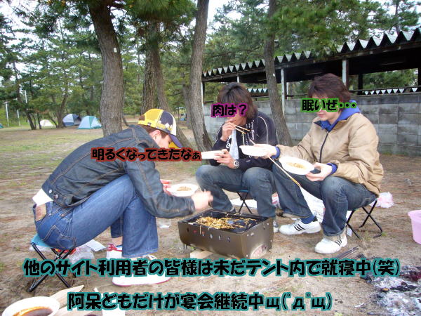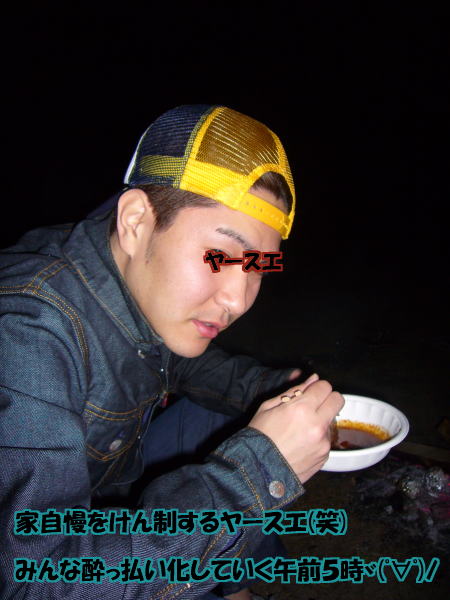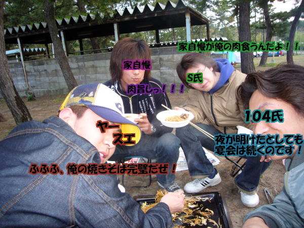 初めからテントなど持ち込んでいない確信犯たちは焼きそばを食い、ビールを飲み続けるщ(゚д゚щ)