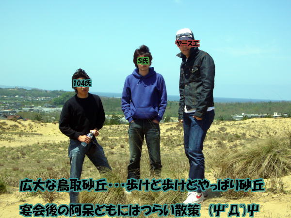 当初の目的地鳥取砂丘へ到着した阿呆ども。