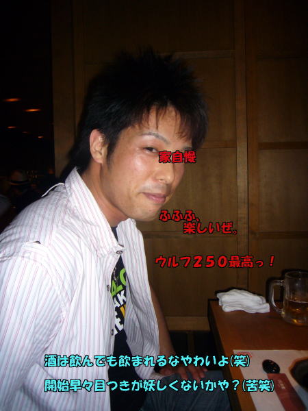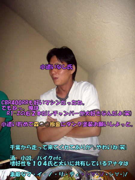 バイクのみならず酒精について話が出来る仲間を見つけて104氏は嬉しそうである。
