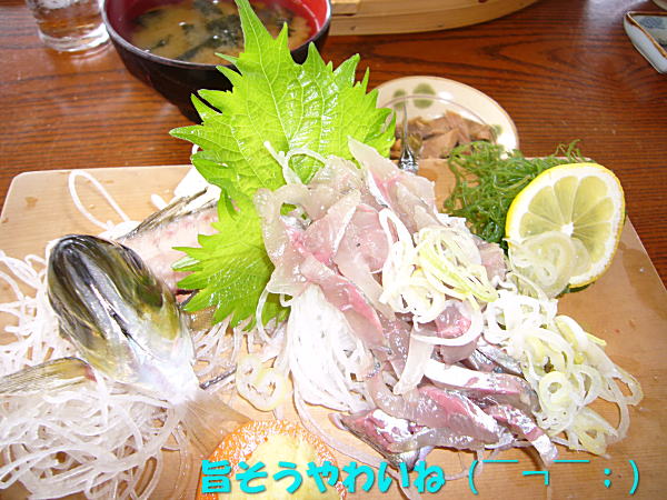 また、浦島太郎氏の頼んだ、アジのたたき定食、活けずくりだったので、一瞬みなびっくりでした。
