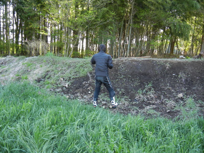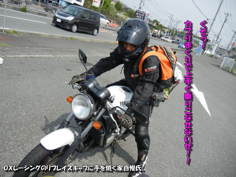 家自慢氏のヘルメットに見える落書きは、油性ペンで何年も前に104氏が描いたもの(笑)